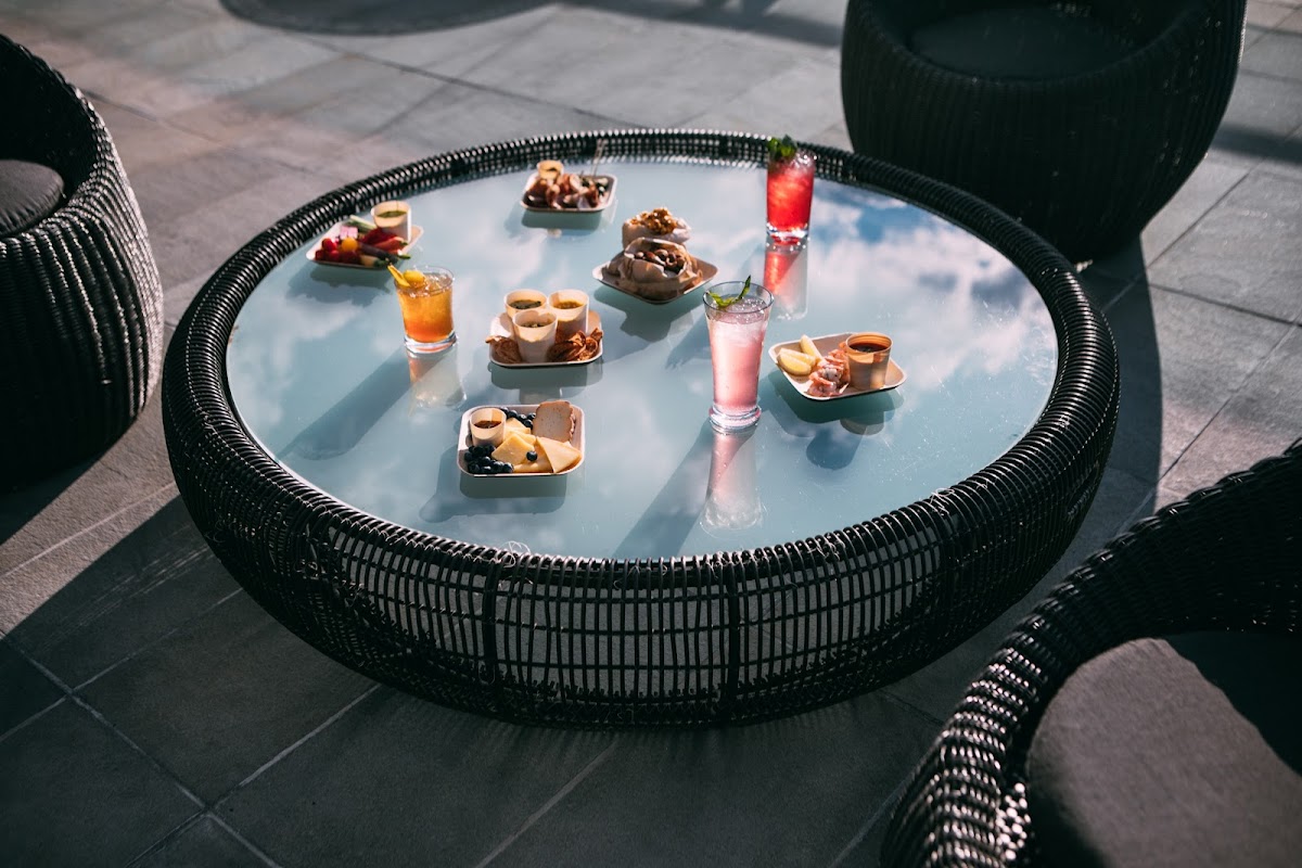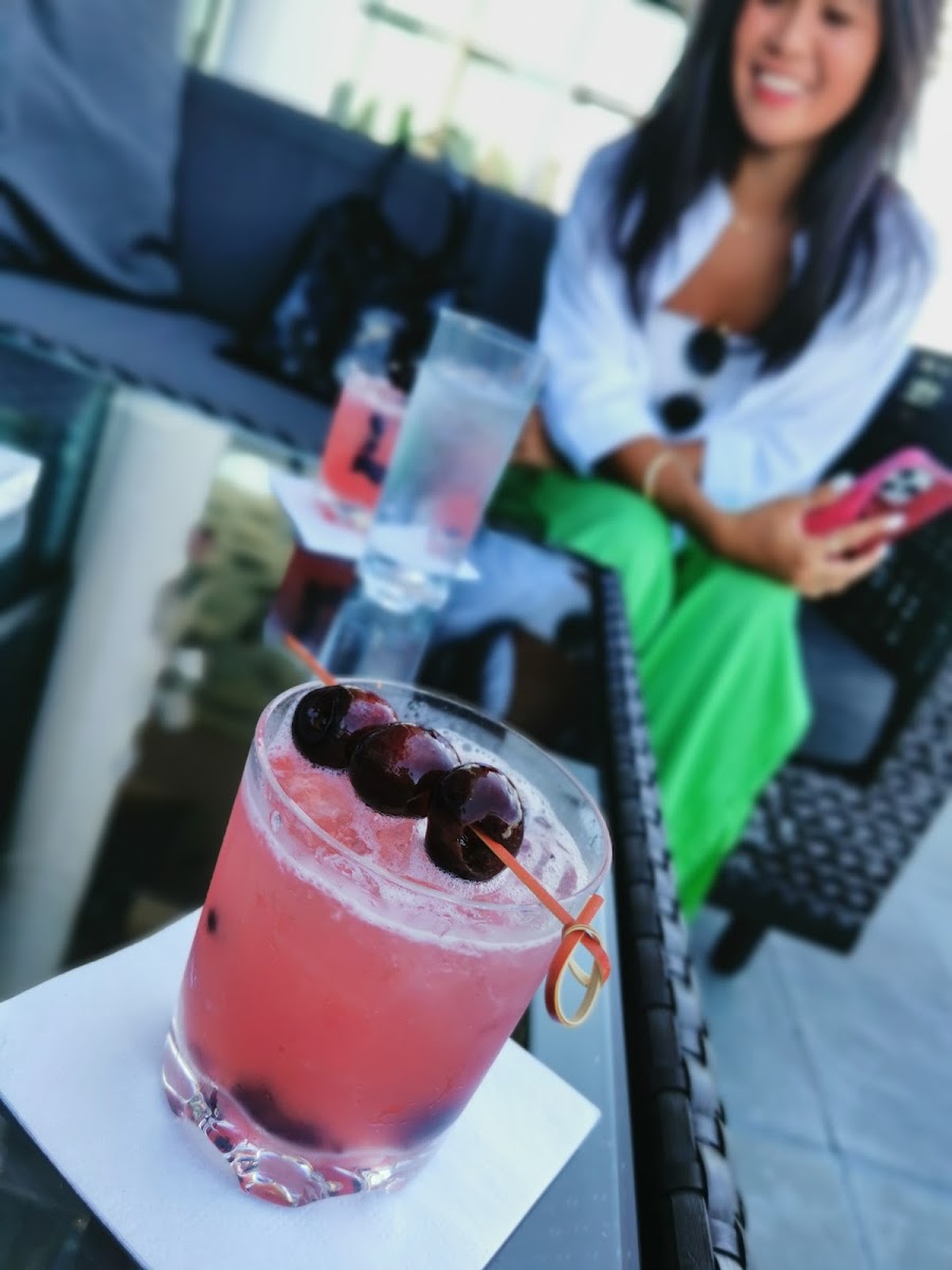 The setting is sleek and modern without feeling overly formal — comfortable seating and ambient lighting create a calming environment that makes it easy to unwind whether you’re here for a sunset cocktail or a leisurely dinner. Evenings are particularly well-suited to soaking in the skyline’s shifting light, making it ideal for small groups, couples, or visitors looking for a sensory mix of great drinks and a visually striking backdrop.